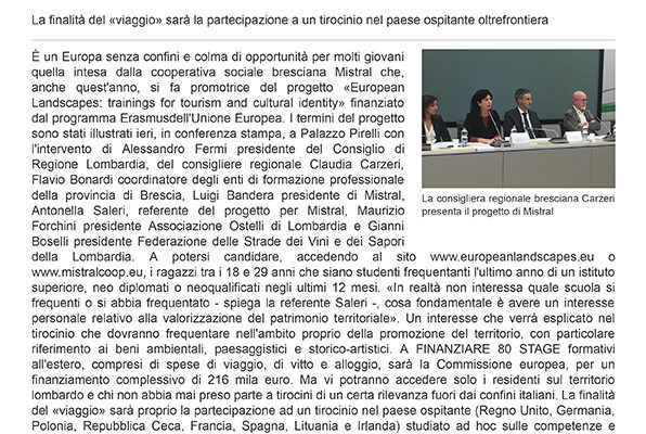 European Landscapes BSOGGI 14.11.18 in allegato l'articolo del Bresciaoggi del 14 novembre 2019 di presentazione del progetto EuropeanLandscapes